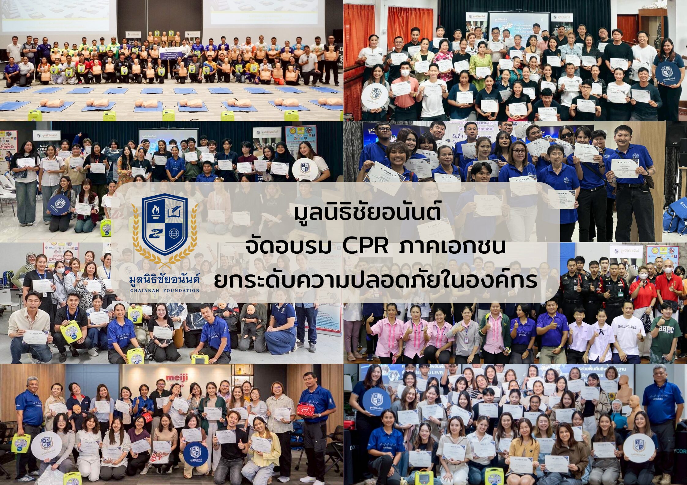 มูลนิธิชัยอนันต์เล็งเห็นว่า องค์กรที่มีบุคลากรจำนวนมาก เป็นพื้นที่สำคัญที่ควรได้รับการอบรมการปฐมพยาบาลเบื้องต้นและการทำ CPR เพื่อเสริมสร้างความปลอดภัยทั้งด้านร่างกายและจิตใจให้แก่พนักงาน ตลอดจนเพิ่มความพร้อมในการรับมือกับเหตุฉุกเฉินในสถานที่ทำงานอย่างมีประสิทธิภาพ